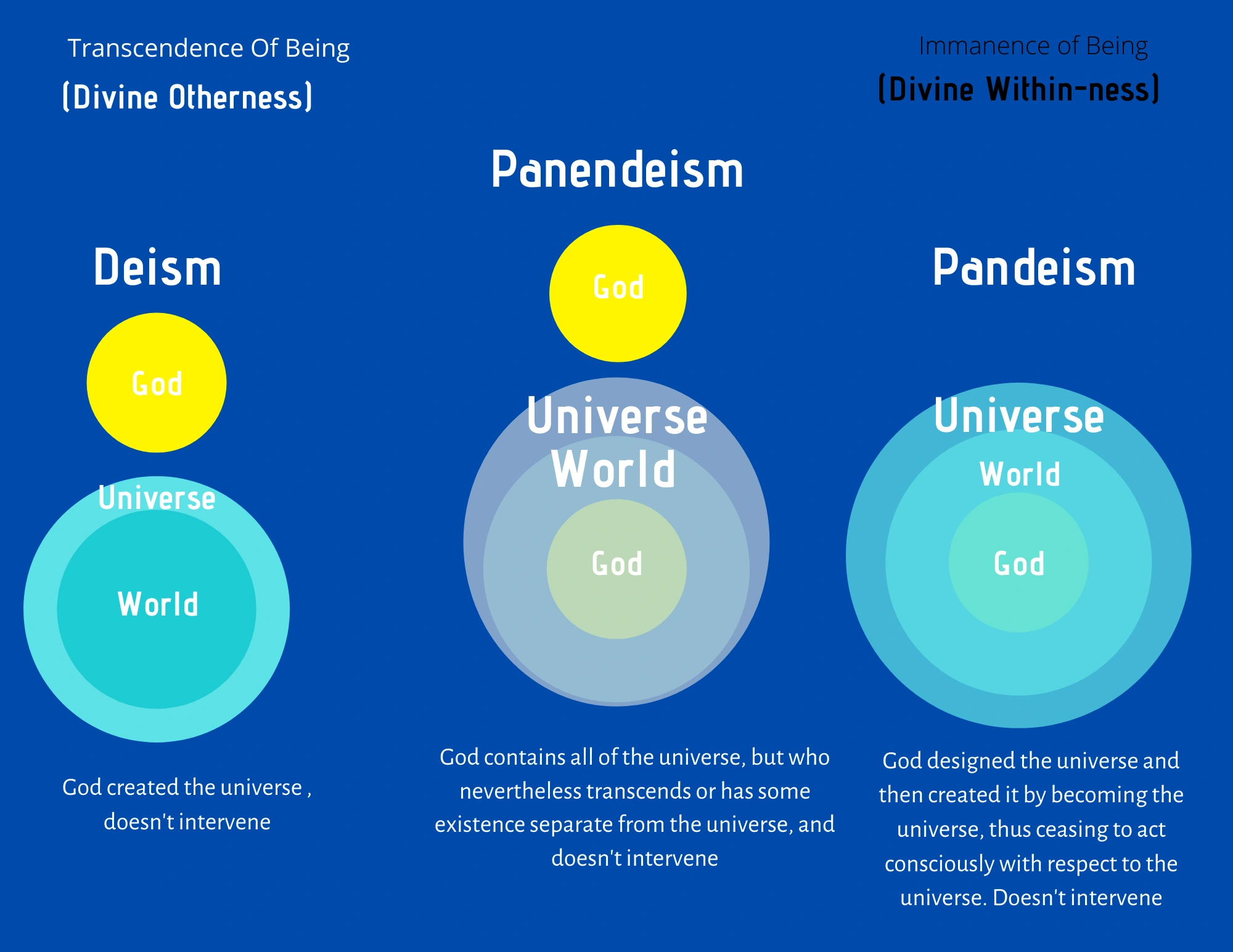 For thousands of years, man has struggled to come to an understanding of our Universe that accords with all that can be observed therein. From this struggle, volume s of theory have been generated, and spread across those volumes and culminating in modern times is the evolution of pandeism (pronounced Pan-DEY-ism). The term weds Greek πάν (pan), meaning all, and Latin deus, meaning God, to appropriately reflect the collection of religious beliefs that combine reconcilable aspects of deism with pantheism.